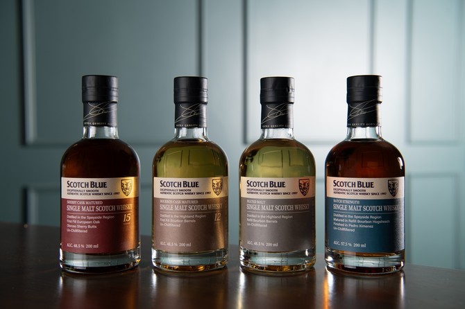 '스카치블루 싱글몰트 컬렉션'은 △농익은 과일, 다크 초콜릿 등 묵직한 풍미의 '셰리 캐스크(Sherry Cask)' △바닐라와 시트러스 풍미의 '버번 캐스크(Bourbon Cask)' △피트 특유의 향이 강하지 않아 입문용 피트위스키로 적합한 '피티드 몰트(Peated Malt)' △응축되고 폭발적인 풍미가 특징인 '배치 스트랭스(BATCH STRENGTH)'로 구성됐다. 알코올 도수 57.5도의 '배치 스트랭스'를 제외한 3종의 알코올 도수는 48.5도다.
