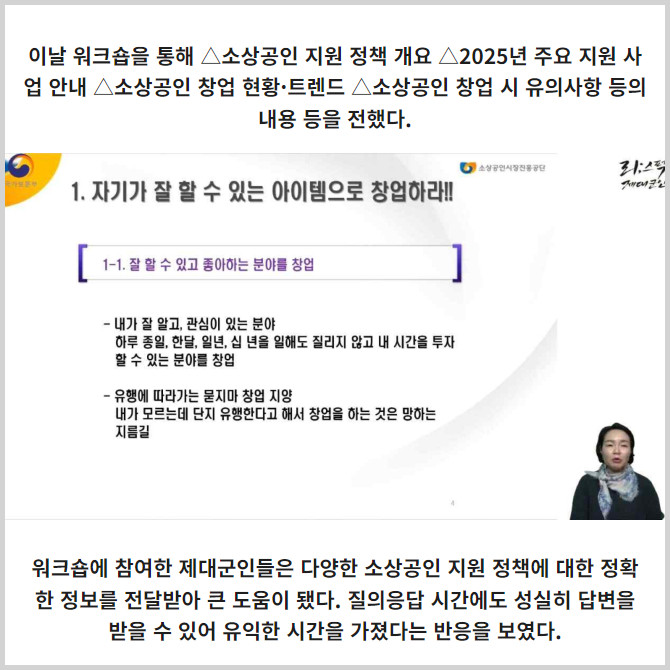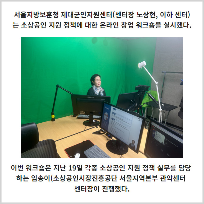 [프라임경제] 서울지방보훈청 제대군인지원센터(센터장 노상현, 이하 센터)는 소상공인 지원 정책에 대한 온라인 창업 워크숍을 실시했다.