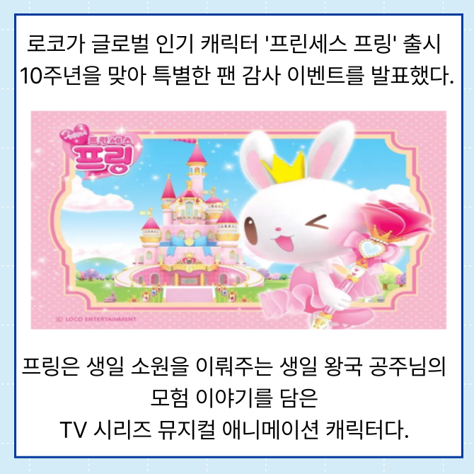 [프라임경제] 로코가 글로벌 인기 캐릭터 '프린세스 프링' 출시 10주년을 맞아 특별한 팬 감사 이벤트를 실시한다.