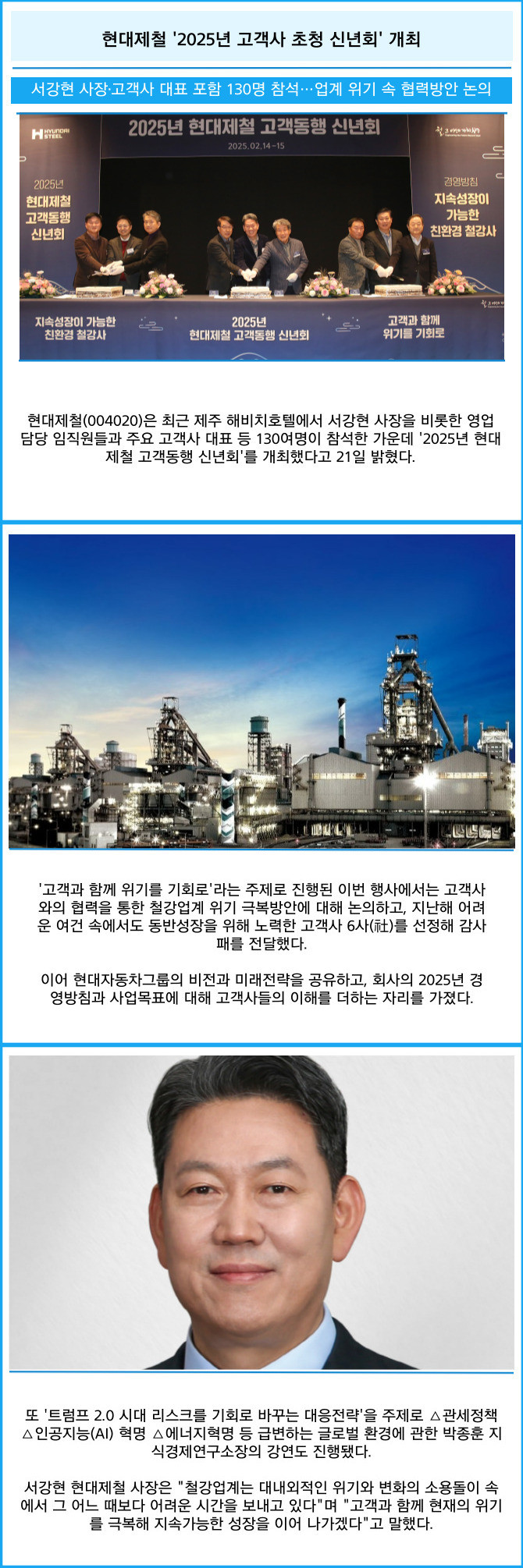 [카드] 현대제철 '2025년 고객사 초청 신년회' 개최