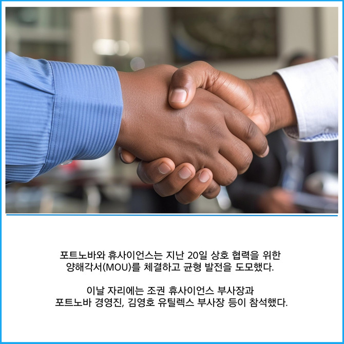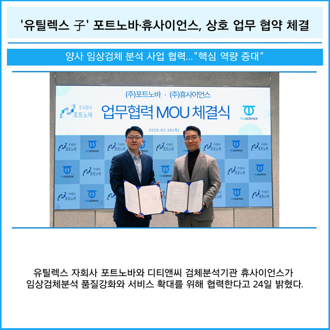 [카드] '유틸렉스 子' 포트노바·휴사이언스, 상호 업무 협약 체결