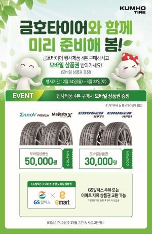 [프라임경제] 금호타이어(대표이사 정일택)가 24일부터 프리미엄 타이어 구매 고객을 대상으로 봄맞이 이벤트를 실시한다.