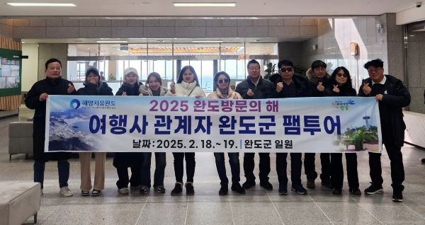 한편 완도군은 '2025 완도 방문의 해'를 맞아 단체 관광객을 유치하는 여행사를 대상으로 관내 음식점, 숙박업소, 해양치유센터 등을 이용할 경우 지원 조건 충족 여부에 따라 인센티브를 지원하고 있다.