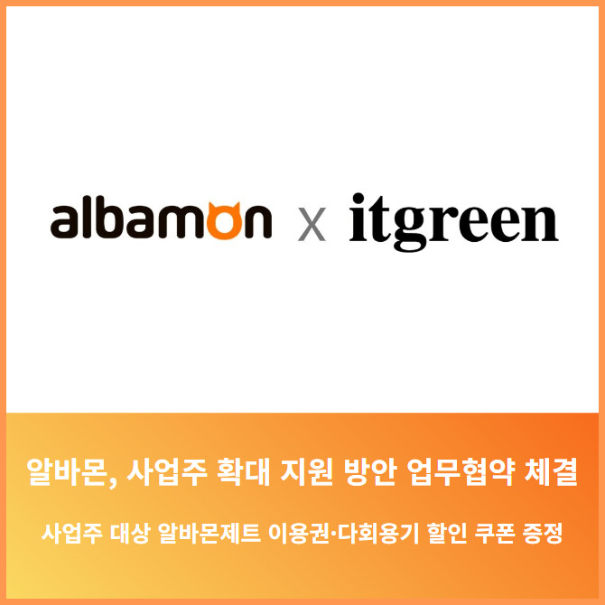 [프라임경제] 아르바이트 플랫폼 알바몬(대표이사 윤현준)은 잇그린과 업무협약을 체결했다고 24일 밝혔다.