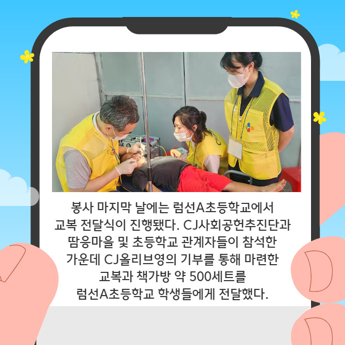 마을주민 500여명 대상 의료처방·상담·교육…CJ올리브영 교복·책가방 지원