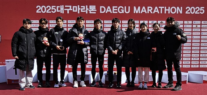 [프라임경제] 청주시청 육상부(감독 홍인표, 코치 이장군)가 지난 23일 대구광역시에서 열린 2025 대구국제마라톤대회에서 남자일반부 단체 1위를 차지하며 금메달을 획득했다.