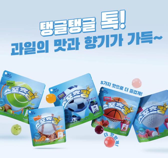 이번에 출시한 '스포츠킹' 젤리는 당류, 트랜스지방, 포화지방이 모두 ZERO로 남녀노소 누구나 즐길 수 있는 타입이다. 건강한 5가지 과일을 먹는 캠페인 '5 Color Food a Day'의 시리즈로 출시했다.