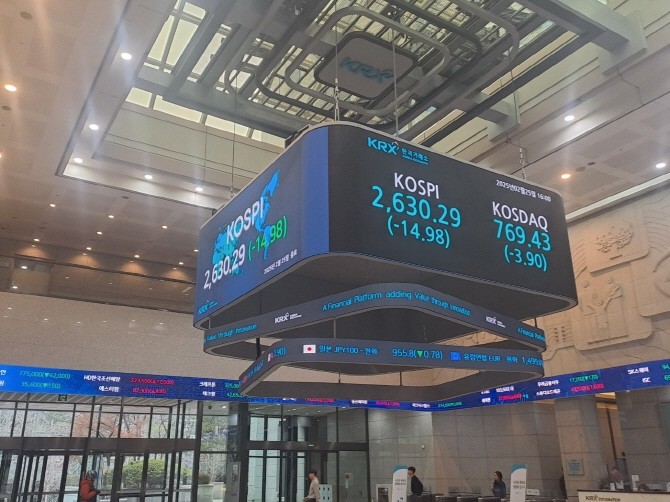 25일 코스피 지수는 전장 2645.27 대비 14.98p(-0.57%) 내린 2630.29에 장을 마쳤다. 지수는 전장보다 27.63p(-1.04%) 내린 2617.64로 출발해 낙폭을 줄였다.