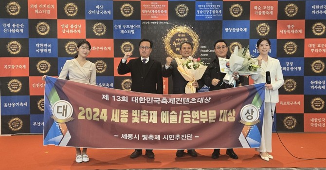 [프라임경제] 지난해 시민 주도로 열린 '2024 세종 빛 축제'가 25일 서울 용산 전쟁기념관에서 열린 '2025년 제13회 대한민국축제콘텐츠대상'에서 축제 예술‧공연 부분 대상을 수상했다.
