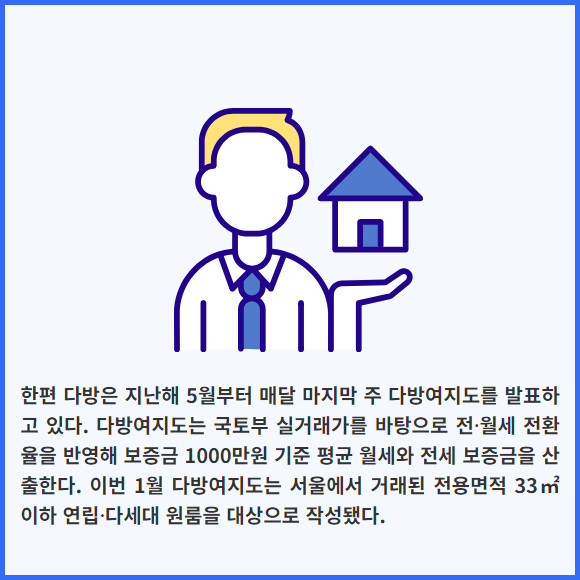 [프라임경제] 서울 연립·다세대 원룸의 1월 전·월세 가격이 전월 대비 2~3% 가량 올랐다. 서울 25개 자치구 중 월세가 가장 비싼 곳은 영등포구로 조사됐다.