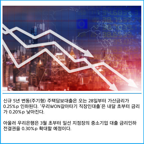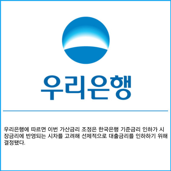 [카드] 우리은행, 대출 가산금리 인하…기준금리 선반영
