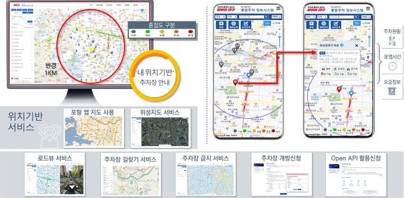 또한 △목적지 중심 주차장 검색과 내비게이션 연계 서비스도 구현했다. 본 서비스는 △반응형 웹 기반으로 PC, 태블릿, 스마트폰 등 다양한 기기에서 최적화된 화면으로 제공된다.