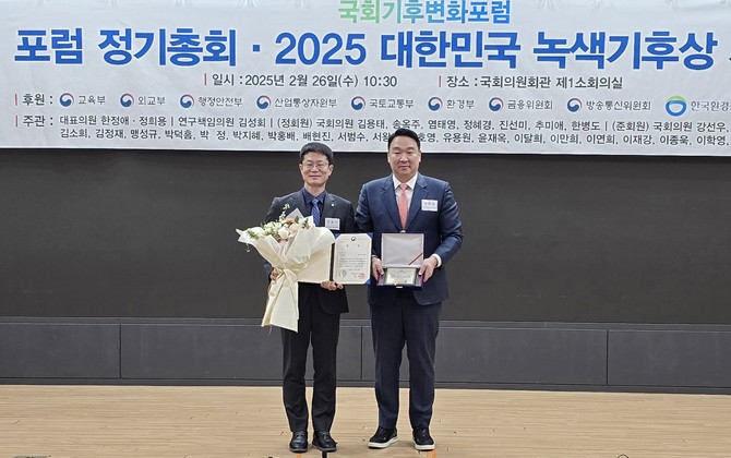 [프라임경제] 한국중부발전(사장 이영조)은 26일 수요일 국회의원회관에서 열린 국회기후변화포럼 주최의 '2025 대한민국 녹색기후상'에서 산업통상자원부 장관상을 수상했다.