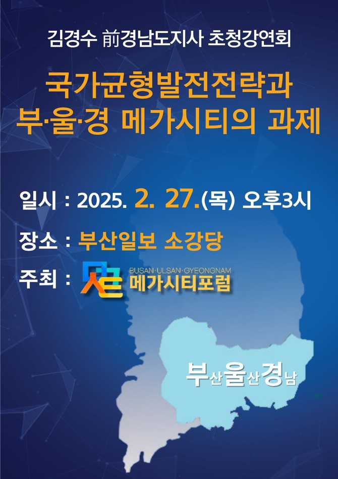 강연자로 나선 김 지사는 △초광역 지방정부 시대의 개막 △가덕도 신공항 △남부내륙고속철도 △진해신항 등 부산경남이 추진 중인 핵심 사업들의 중요성을 되새기는 동시에 강력한 지방 분권의 필요성도 설명할 계획이다.