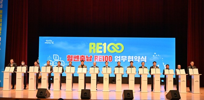 이번 협약은 도와 도의회, 도내 15개 시군, 충남테크노파크를 비롯한 도내 공공기관, 발전사, 에너지기업, 시민단체, 관련 기업인협회 등 51개 기관이 한마음 한뜻으로 RE100 정책을 추진해 탄소중립을 실현하고자 마련됐다.