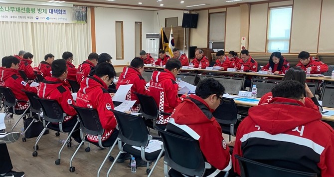 이날 회의에는 포항시, 경주시, 김천시, 안동시, 구미시, 영천시, 영덕군, 고령군, 성주군, 칠곡군 등 10개 시·군과 국립산림과학원, 한국임업진흥원, 산림기술사 등 전문가들이 참석해 지역 상황을 고려한 맞춤형 방제 전략을 논의했다.