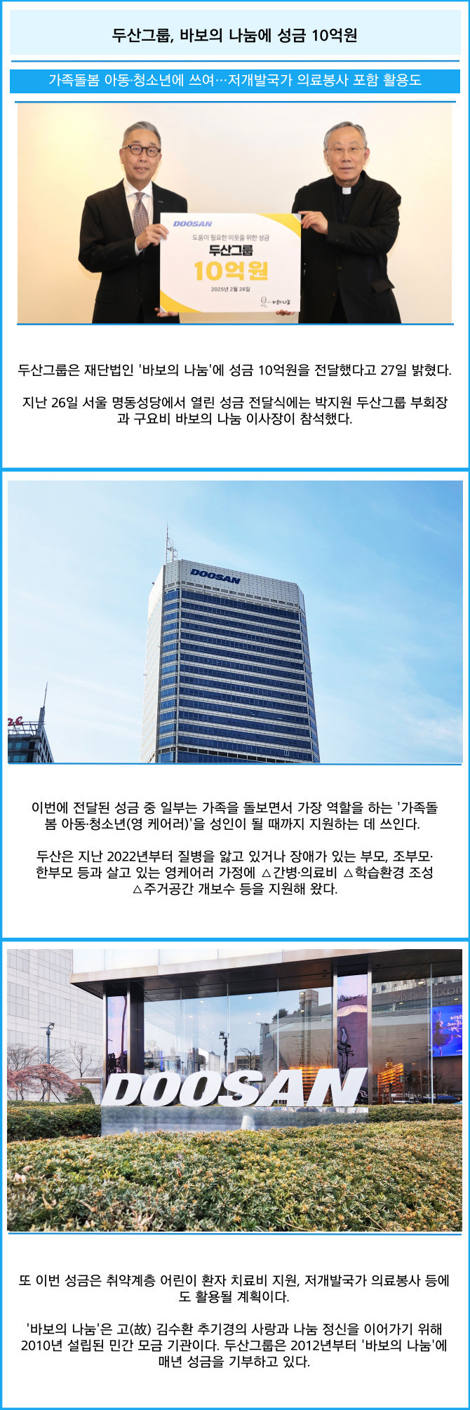 [카드] 두산그룹, 바보의 나눔에 성금 10억원