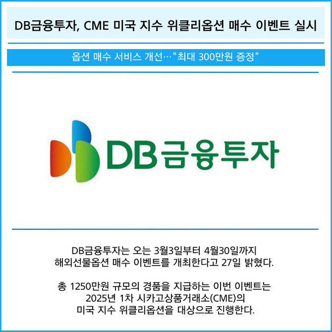 [카드] DB금융투자, CME 미국 지수 위클리옵션 매수 이벤트 실시
