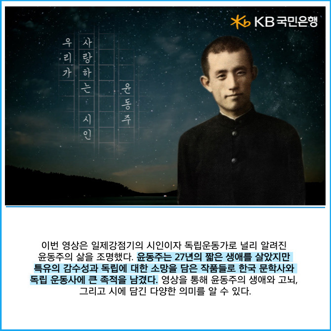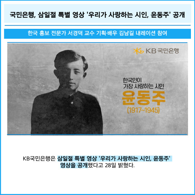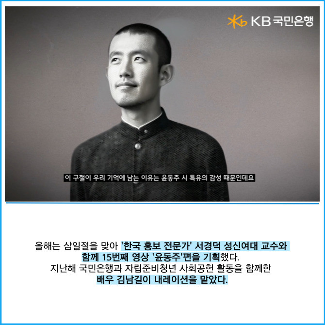 [카드] 국민은행, 삼일절 특별 영상 '우리가 사랑하는 시인, 윤동주' 공개