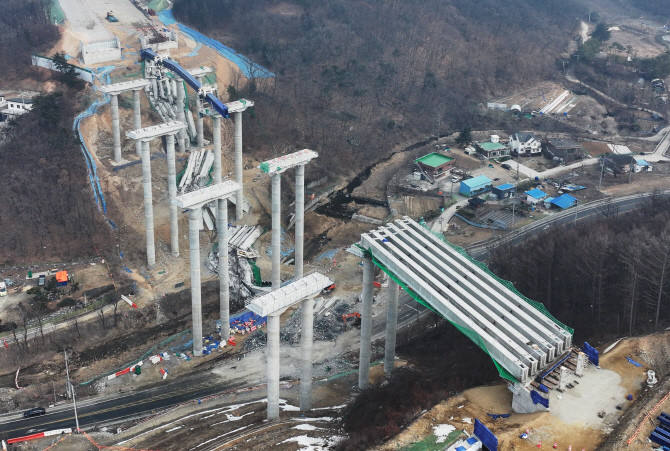 이번 사고는 지난 25일 오전 9시49분께 경기 안성~서울 세종고속도로 세종~포천 포천방향 구간 9공구 265m 길이의 청룡천 교각(다리 기둥)에 있던 상판이 무너져 발생했다.