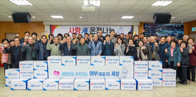 간담회 기간 중 수협은행과 함께 '사랑해 온정 나눔 활동'을 펼쳐 6개 회원조합 소속 저소득 어업인에게 6000만원 상당의 나눔 물품을 전달하며 감사의 뜻을 전했다.
