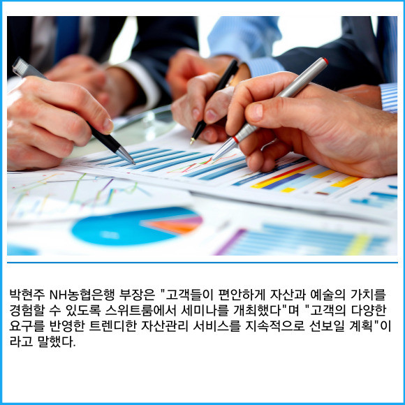 [프라임경제] NH농협은행이 지난달 28일 서울 신라호텔에서 우수고객과 함께 'Art & Asset Suite' 세미나를 개최했다고 2일 밝혔다.