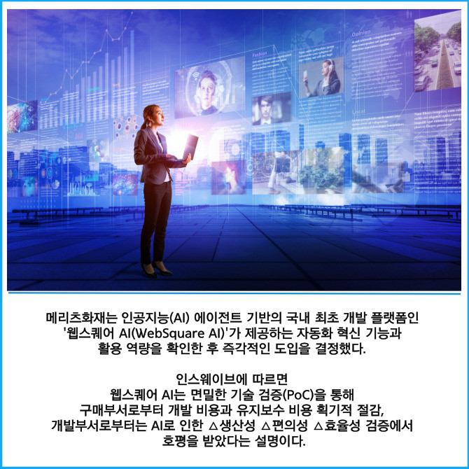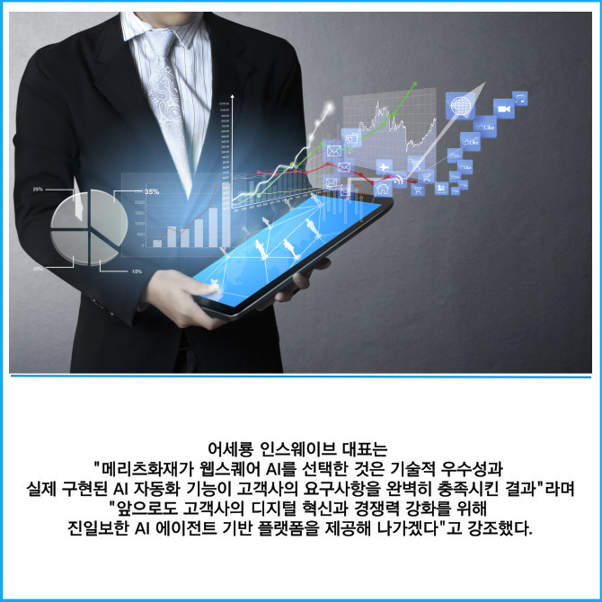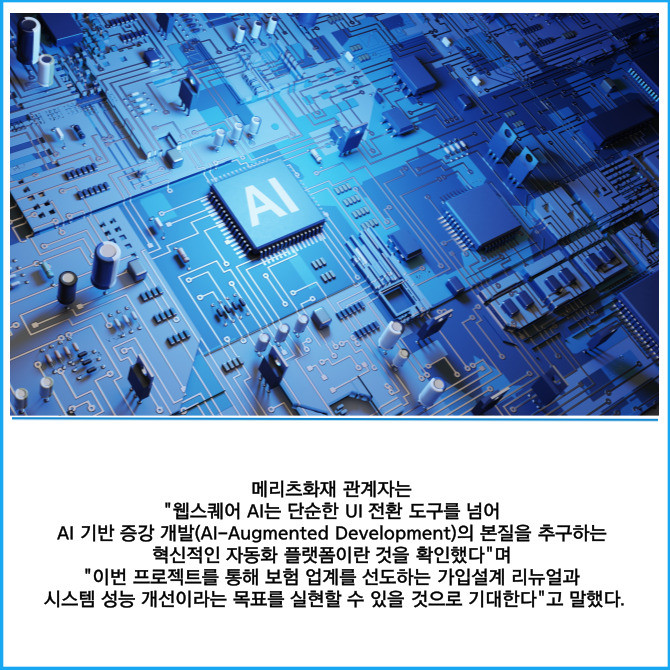 메리츠화재는 인공지능(AI) 에이전트 기반의 국내 최초 개발 플랫폼인 '웹스퀘어 AI(WebSquare AI)'가 제공하는 자동화 혁신 기능과 활용 역량을 확인한 후 즉각적인 도입을 결정했다.