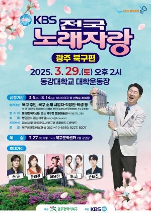 4일 북구에 따르면 'KBS 전국노래자랑 광주 북구편'이 오는 29일 오후 2시부터 동강대학교 운동장에서 열린다.