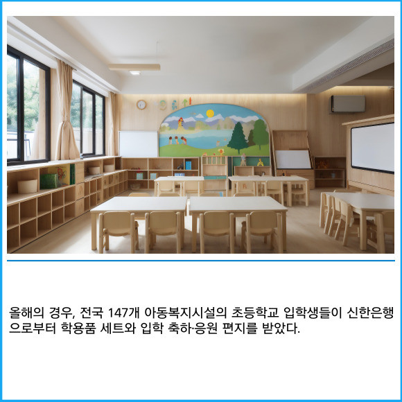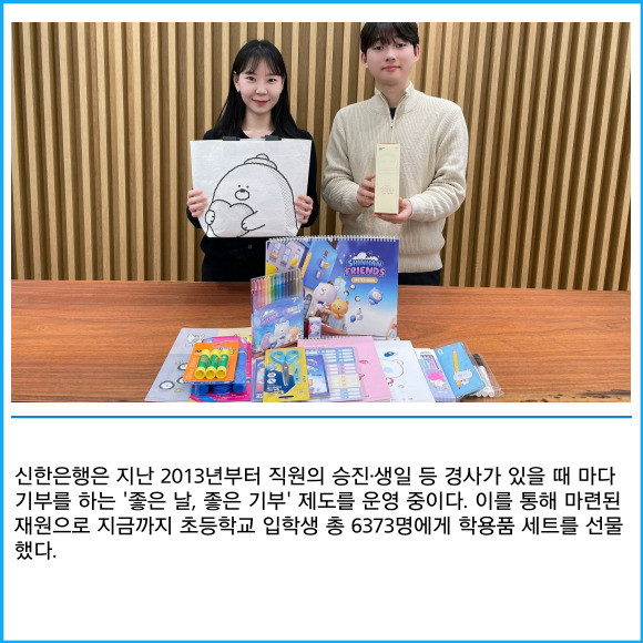 [프라임경제] 신한은행이 지난달 28일 한국아동복지협회 소속 아동복지시설의 초등학교 입학생들에게 학용품 세트와 축하편지를 전달했다고 4일 밝혔다.