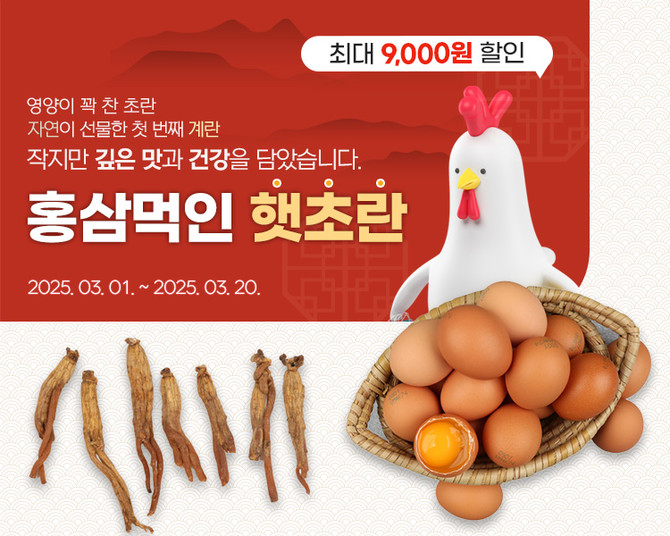 이번 할인 행사는 홍삼을 먹인 신선한 햇 초란을 최대 9000원까지 할인된 가격으로 제공해 고객들의 큰 호응이 기대된다. 한정된 수량으로 진행되는 행사인 만큼 조기 품절될 수 있으니 구매를 원한다면 서두르는 것이 좋다.