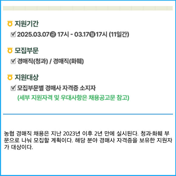 [카드] 농협, 경매직 신규직원 공개 채용