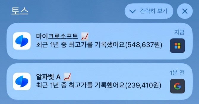 토스증권은 이날 장 시작 후 오라클, 알파벳A, 마이크로소프트, 마이크론테크놀로지, AMD, 마벨테크놀로지 등 다수 종목이 52주 신고가를 기록했다는 알림을 보냈다.