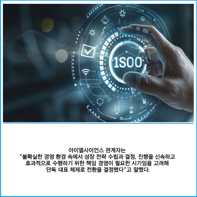 [카드] 아이엘사이언스, 송성근 단독대표 체제 전환..."책임 경영 강화"