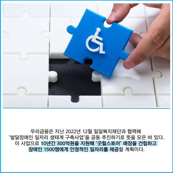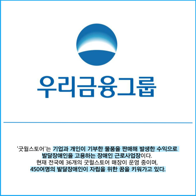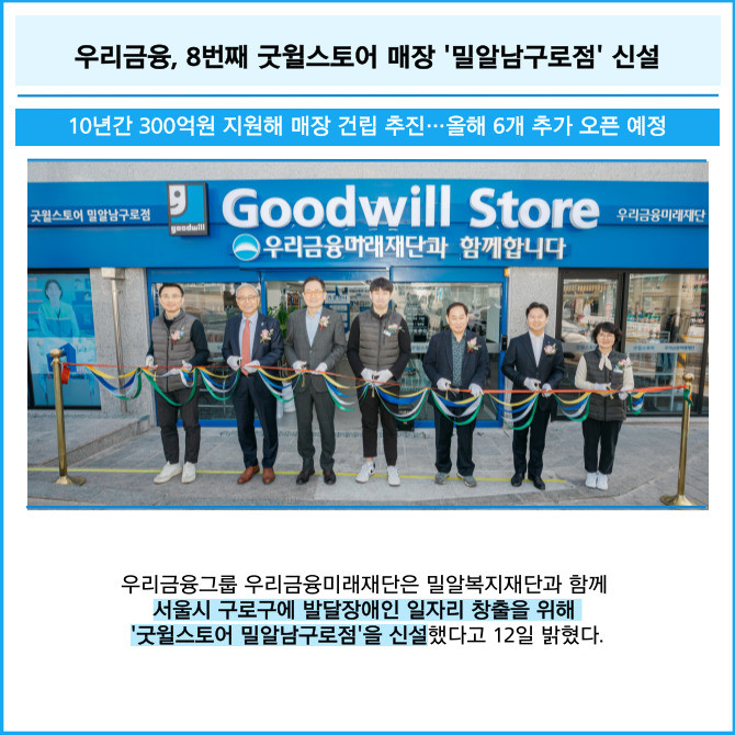 [프라임경제] 우리금융그룹 우리금융미래재단은 밀알복지재단과 함께 서울시 구로구에 발달장애인 일자리 창출을 위해 '굿윌스토어 밀알남구로점'을 신설했다고 12일 밝혔다.
