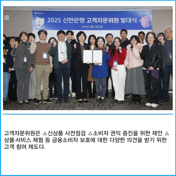 [프라임경제] 신한은행이 서울 중구 소재 본점에서 고객중심 경영을 실천하기 위한 '2025년 고객자문위원 발대식'을 개최했다고 13일 밝혔다.