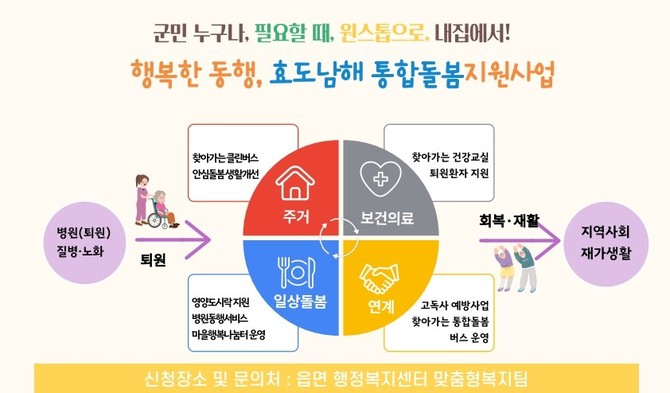 [프라임경제] 남해군이 군민들에게 보다 촘촘하고 체계적인 복지서비스를 제공하기 위해 남해형 통합돌봄 사업인 '효도남해'를 본격 추진한다.
