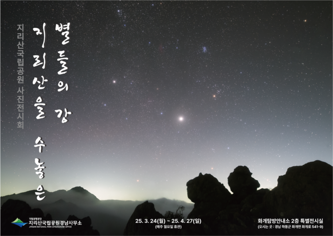 [프라임경제] 지리산국립공원경남사무소가 3월24일부터 4월27일까지 경남 하동군에 위치한 지리산 화개탐방안내소에서 '지리산국립공원을 수 놓은 별들의 강' 특별전시회를 개최한다.