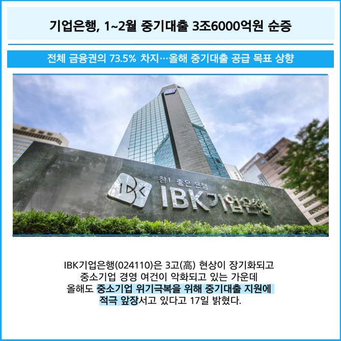 [프라임경제] IBK기업은행(024110)은 3고(高) 현상이 장기화되고 중소기업 경영 여건이 악화되고 있는 가운데 올해도 중소기업 위기극복을 위해 중기대출 지원에 적극 앞장서고 있다고 17일 밝혔다.