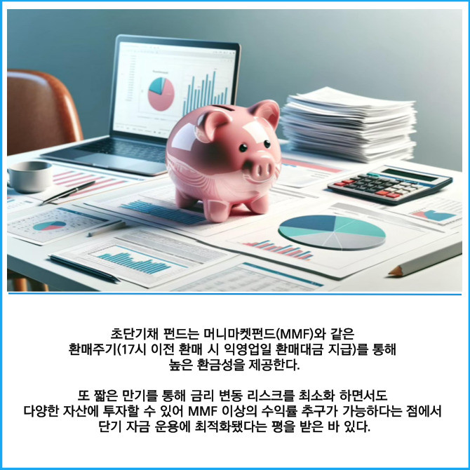 해당 펀드는 짧은 듀레이션을 통해 금리 변동에 따른 리스크를 최소화하고 안정적인 성과를 추구하는 추가형 초단기채 펀드이다.