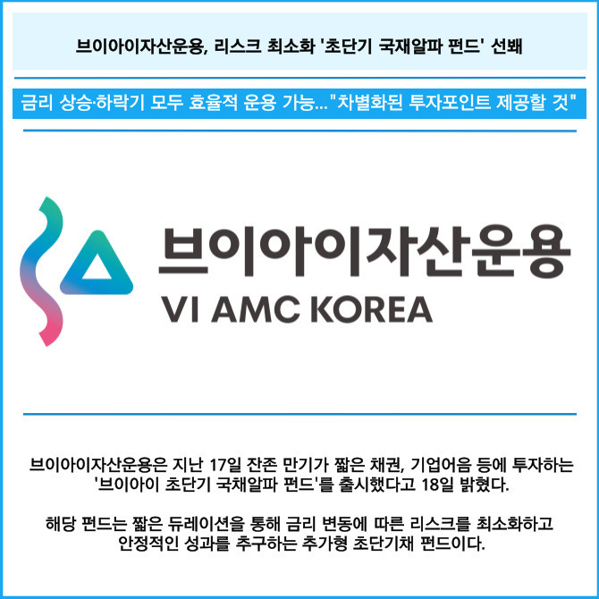 [카드] 브이아이자산운용, 리스크 최소화 '초단기 국재알파 펀드' 선봬