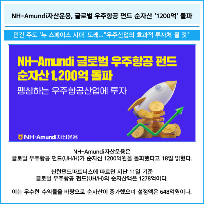 [카드] NH-Amundi자산운용, 글로벌 우주항공 펀드 순자산 '1200억' 돌파