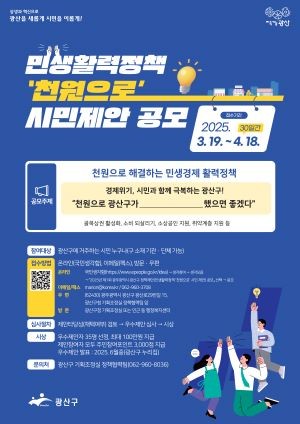 광산구는 19일부터 4월18일까지 민생 활력 정책 '천원으로' 시민 제안 공모전을 진행한다고 밝혔다.