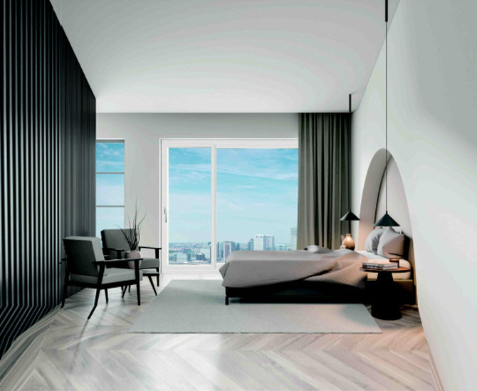 아울러 창호 면적의 약 80%를 차지하는 유리에는 KCC글라스의 고단열 특수 코팅 '로이(Low-E) 유리'를 적용할 수 있어 냉난방 에너지 절감 효과가 우수하다는 평가다.