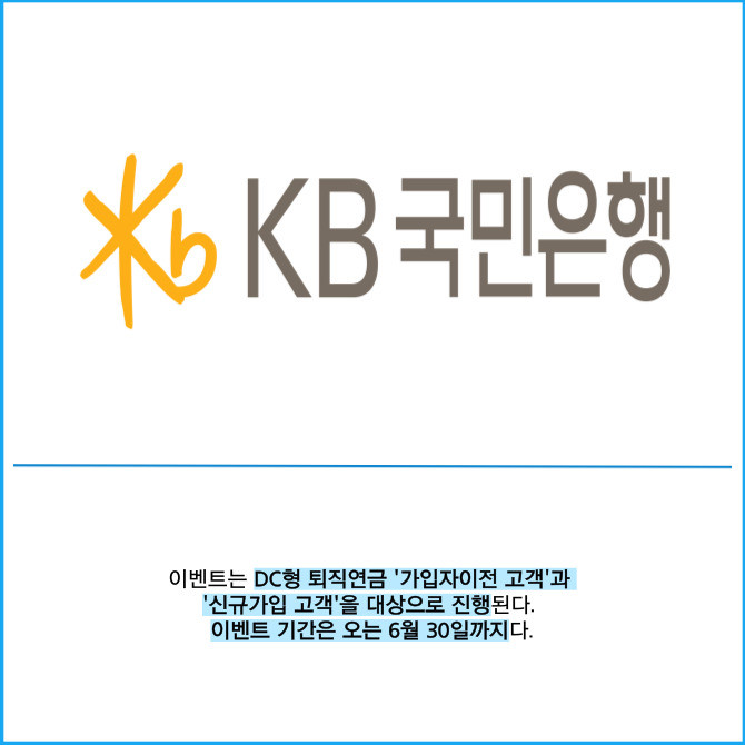 [프라임경제] KB국민은행은 DC형 퇴직연금 가입 고객을 위한 쿠폰 증정 이벤트를 진행한다고 21일 밝혔다.