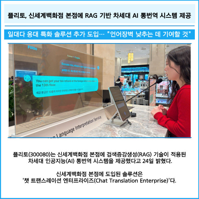 [카드] 플리토, 신세계백화점 본점에 RAG 기반 차세대 AI 통번역 시스템 제공