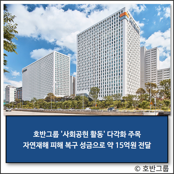 1일 호반건설에 따르면 호반건설과 대한전선, 대아청과는 자연재해 피해 복구와 관련해 영남권 산불피해 구호 성금으로 3억원을 기부했다. 이와 함께 2023년부터 지금까지 국내뿐만 아니라 튀르키예 지진, 우크라이나 전쟁 피해 복구를 위해 약 12억원을 전달했다.