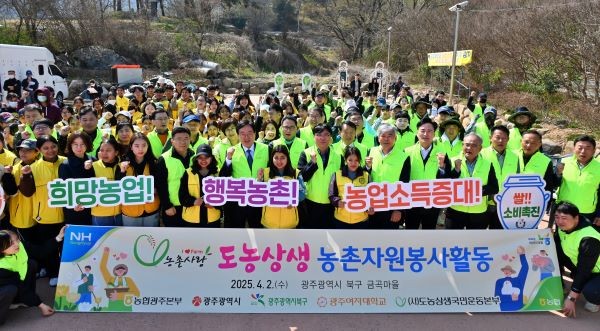[프라임경제] 농협광주본부가 2일 금곡마을에서 '행복농촌봉사단' 영농지원발대식을 성황리에 개최했다. 이번 행사는 농촌 일손돕기와 지역사회 상생을 위한 뜻깊은 자리로, 광주시와 북구, 광주여자대학교 등 120여 명의 참여자들이 모였다.