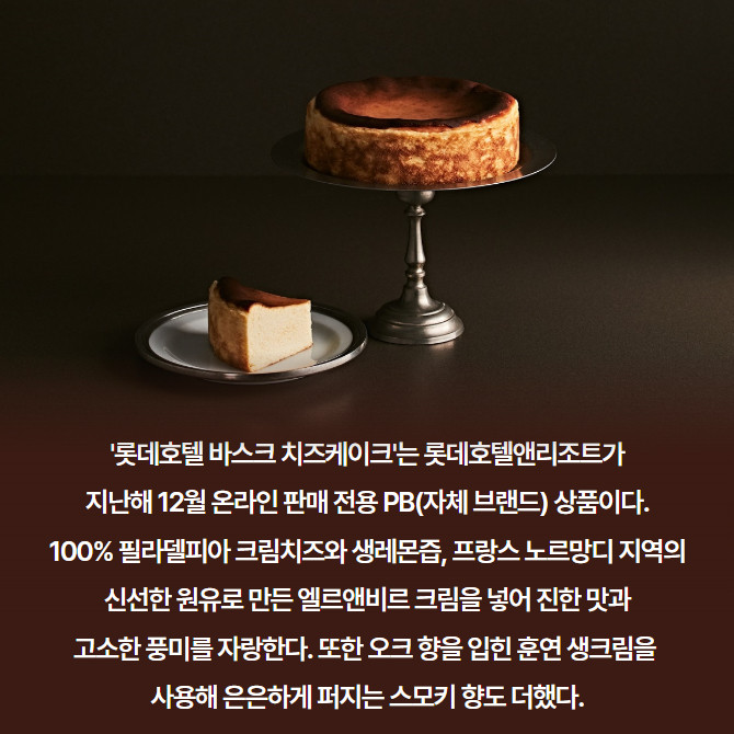 호캉스와 '바스크 치즈케이크'도 함께, 오크 훈연 조리로 스모키 향 특징