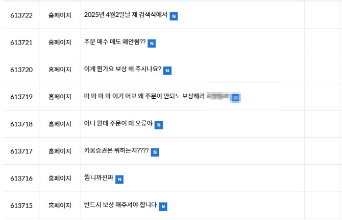 투자자들은 "주문 매수 매도가 안된다" "주문이 오류가 떴다" 등 불만을 토로하고 있다.