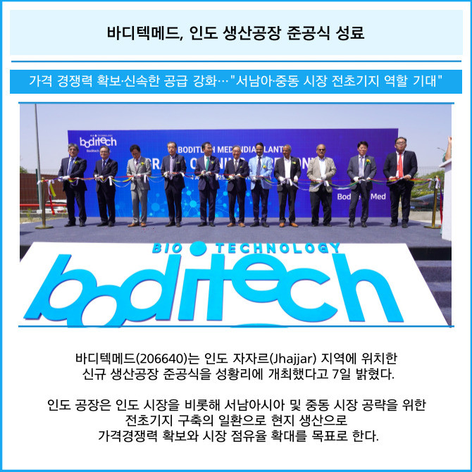 [카드] 바디텍메드, 인도 생산공장 준공식 성료